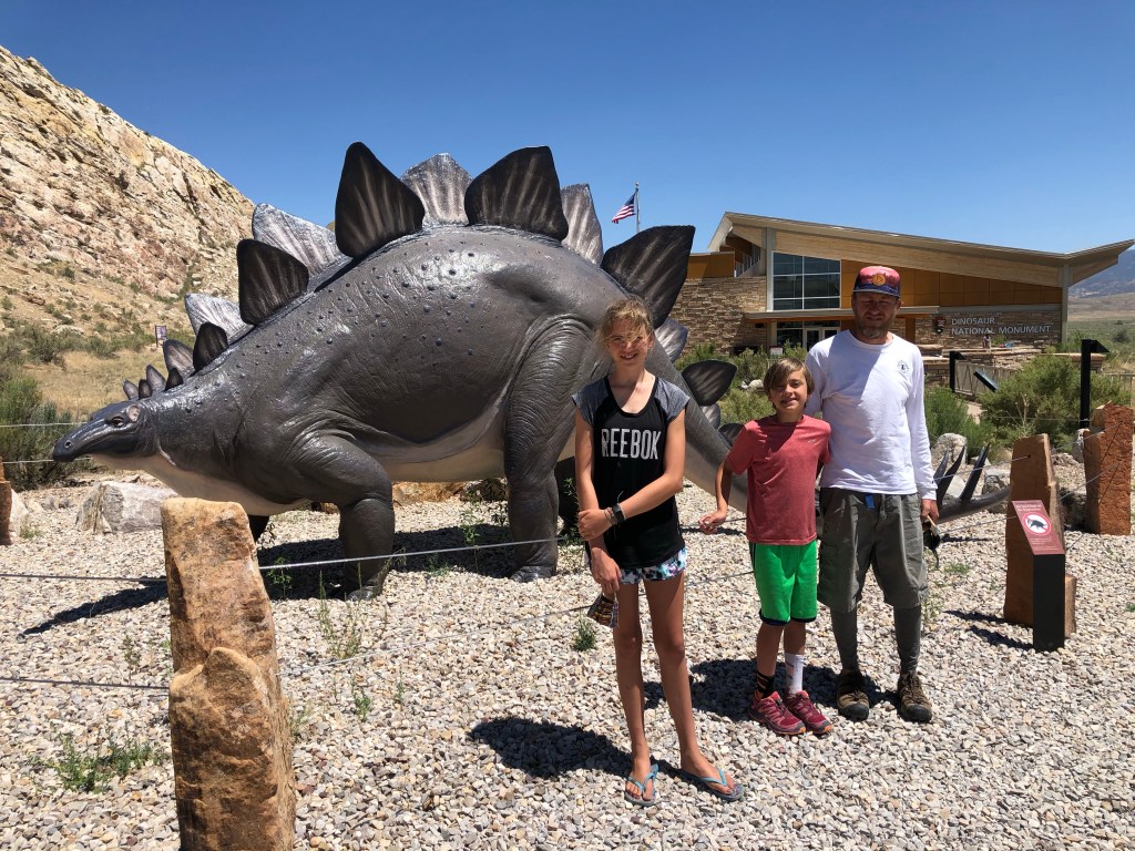 Supply stop in Grand Junction. We have quickly realized that our cooler arrangement won’t hold up to the intense summer heat. So we bought a second Yeti cooler, doing the math, we could spend $6/day or every other day on ice or make the investment and have ice last closer to a full week. We also stopped at Sprouts and City Market for our first weekly resupply of groceries. Those stops took a long time, but we got back on the road and to Dinosaur before dark so that’s a win.