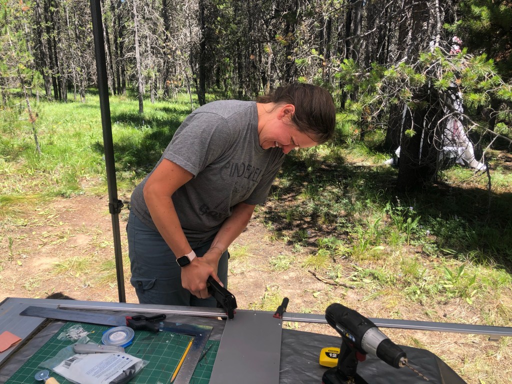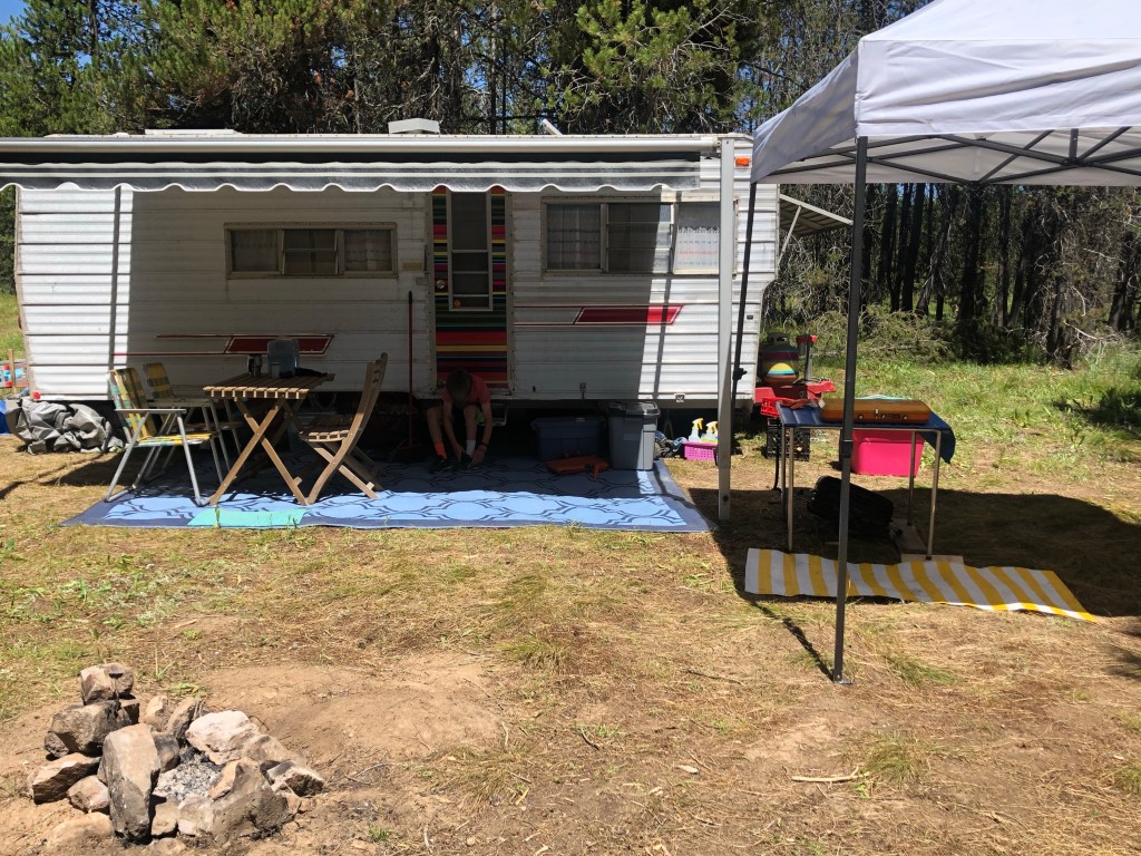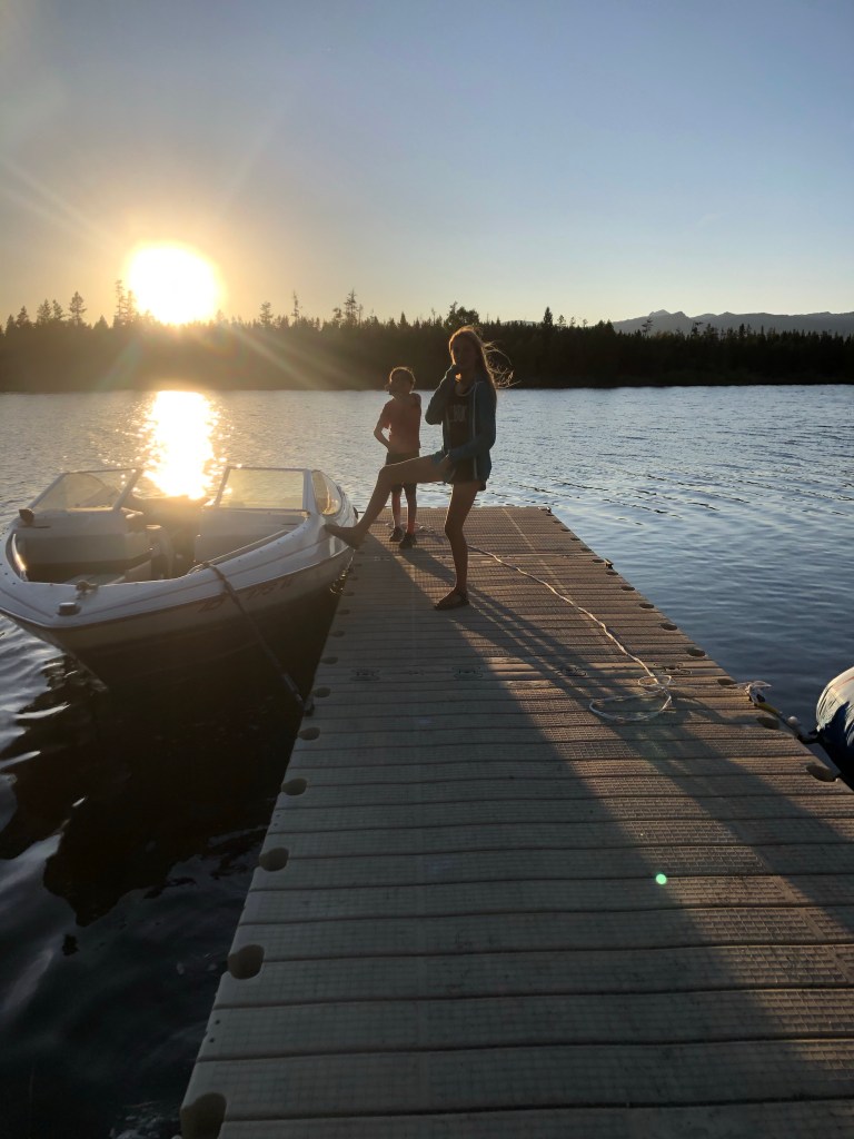 I’m starting to take great satisfaction in a job well done on the road. Traveling with a vintage trailer poses some unique challenges, something is always on the fritz or needing some upkeep. Fortunately, nothing major yet, but plenty of little things to keep us on our toes. When we were in Logan, Utah we started to address our messed up screen door, today was the day to get it fully restored and re-screened. Zach and I worked on it together while the kids roamed around back and forth to the lake we are parked near. It’s so much better now and was a relatively easy job. Now we’re hedging our bets for what might go out next, the water heater or something else. Later, we took a drive around to the dam at Island Park lake, we spotted 3 moose there wading near the lakeshore and eating grasses and willow. We’ve been wrapping up a lot of our evenings the same way we did back in Denver, with a sunset walk. Sunsets are later here and will continue to get later as we move further north, so the kids have been reveling in the much more liberal bedtimes.