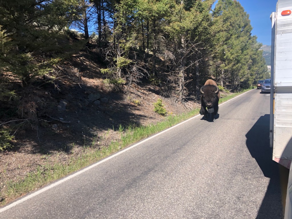 The drive through the northeastern route in Yellowstone was full of bison traffic jams and we finally saw the big herds vs. the lone handful we’d seen on the southern end of the park three weeks prior. We made a beeline to some high altitude camping just outside of Cooke City and found an ample choice of places in the Soda Butte campground (first time in a month of having this kind of campsite luck!).
