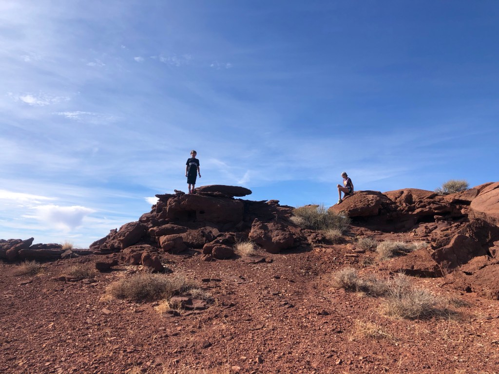 Since we were coming from the south and didn’t want to move twice in a short span of time we opted to spend more time in the Needles district of Canyonlands NP. The highlight was the 11 mile hike we took in the Chesler Park area. We all really pushed ourselves to go this distance, surpassing our previous hiking record of about 8 miles. I’m always particularly amazed at Camden’s ability to span these distances since he still has the shortest legs. Everyone loved the challenging rock scrambling parts the most. Needles to say, we took it easy the next day with a drive into Moab for our favorite burgers at Milt’s and some custom screen printed t-shirts from the old shop on the main drag.