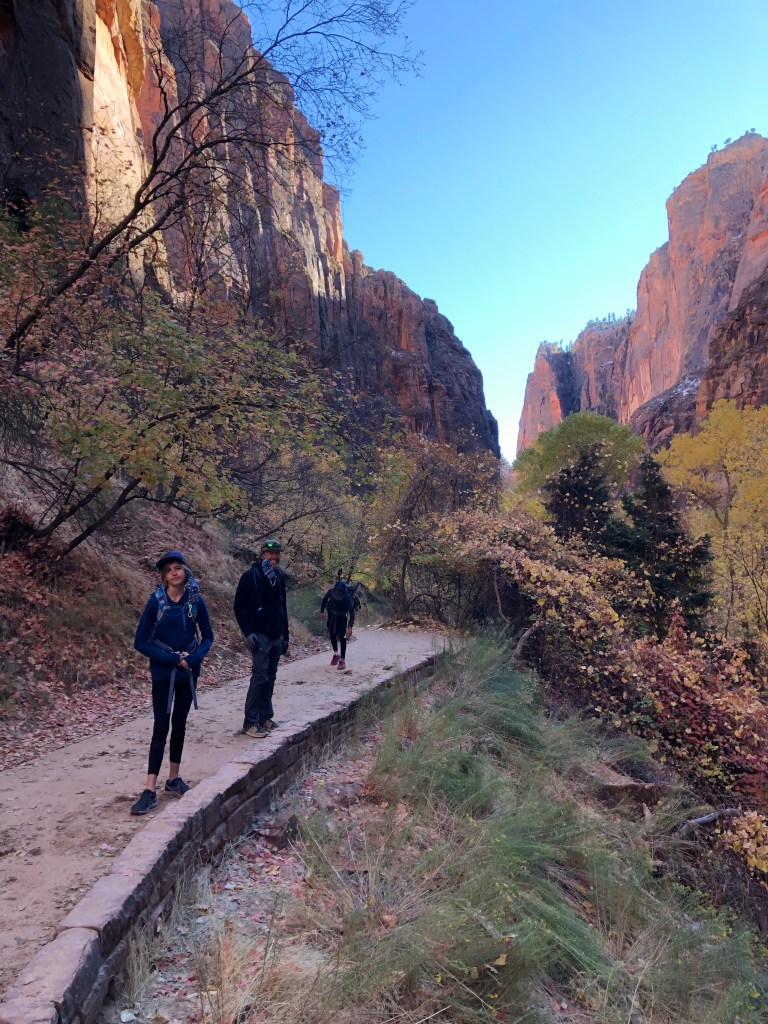 Day one in Zion was epic. We hiked up to Angel’s Landing (but skipped the chain climb because it was super crowded), and went for awhile longer up on the West Rim Trail. After our legs were good and tired we trekked back down and hopped on the shuttle to the Riverwalk Trail at the end of the line. Overall, we got in about 10 miles before returning to our car and taking a drive up the Zion – Mount Carmel Highway. This drive was reminiscent of Going to the Sun Road in Montana with huge rock walls, amazing vistas, a tunnel from 1930, and endless views. Once day one was complete, ice cream was quickly consumed and we all together skipped dinner on account of being too tired to cook.