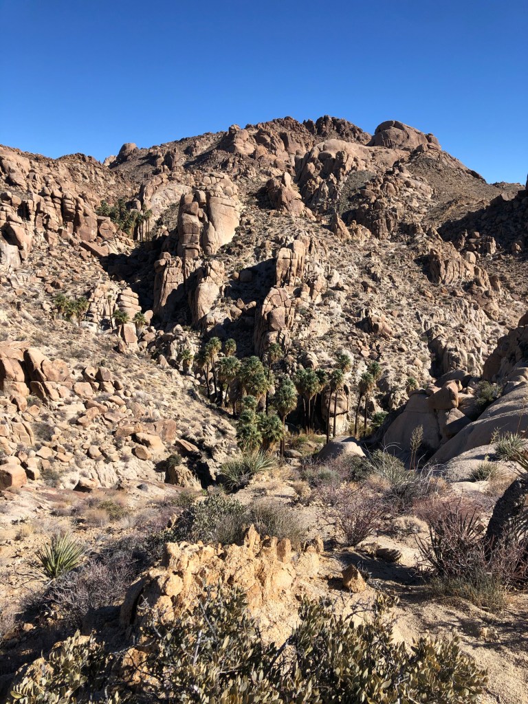 The third full day spent in the park was on the southern end and a longer hike called Lost Palms Oasis. We hiked to just what the trail was called, some lost palms settled into a wash that someone must have planted for relief from the desert heat who knows how long ago. Camden was in high gear on this hike, a surprising development for the day, he had been expecting some scrambling and rock climbing the whole time so he was in a hurry on this hike. It was the fastest pace we’d ever done 7 miles in, just under 3 hours! From the end of this trail, the boys decided to bushwhack down an old canyon and waterfall that fed basically right back to our camp, that satisfied his want for an challenge. Us girls went from where we came to retrieve the car. We got home early and rested for the remainder of the day, after ice cream of course.