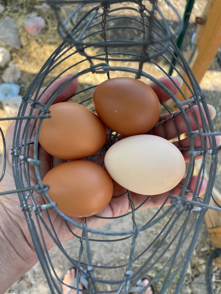 This gets to the heart of our fast paced, instant gratification consumer minds. I’ve long let go of Amazon-speed expectations, even they take a week to deliver here. Maybe it’s divine timing, and that means slower, not at my harried and frantic pace. I’m finally coming to accept my human limitations and just go with the flow a lot more these days. The chickens are coming into egg laying, so perhaps they were setting the pace all along. (Yes, there will be pasture eggs for sale as available!)